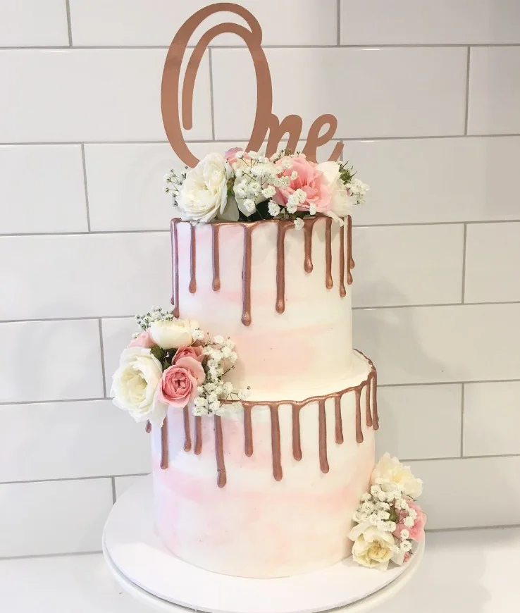 One Cake Topper First Birthday Cake Topper Pink And Gold