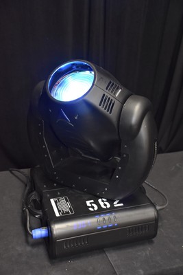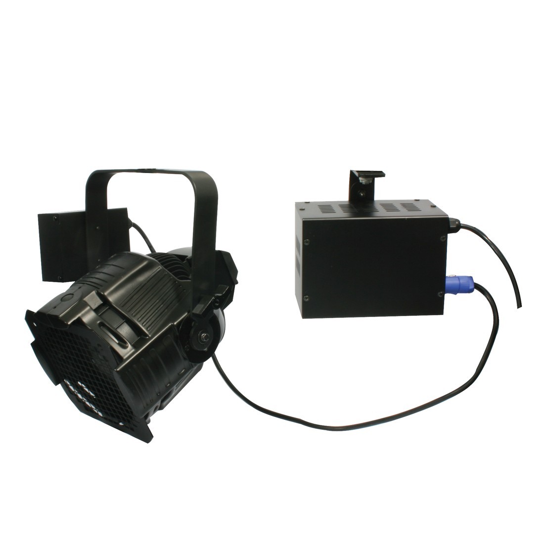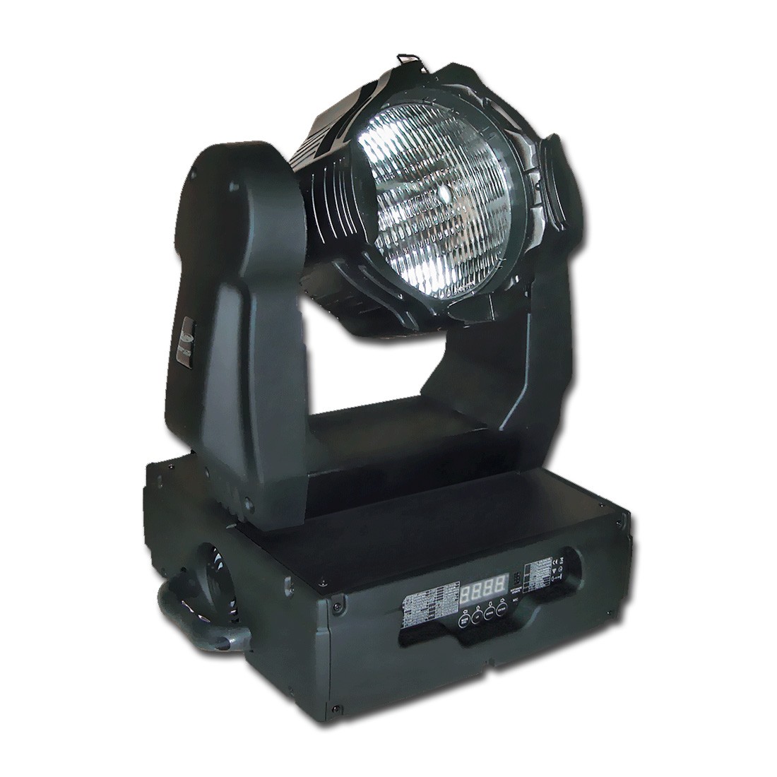 575w discharge opti par moving head fixture gel frame holder included glass dichroic reflector for even lamp output anti reflective coated lenses includes 4 lens options.