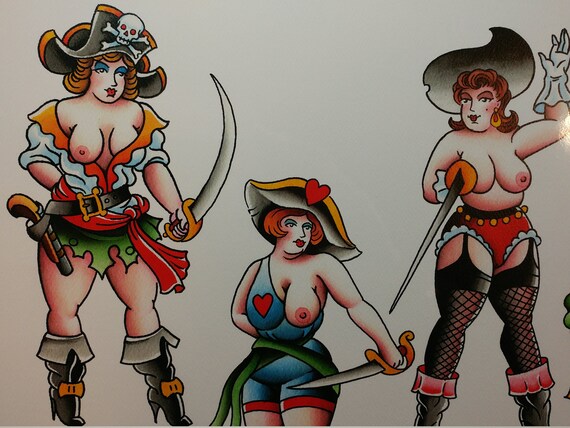 Chubby Bbw Traditional Pinup Tattoo Flash Art Print
