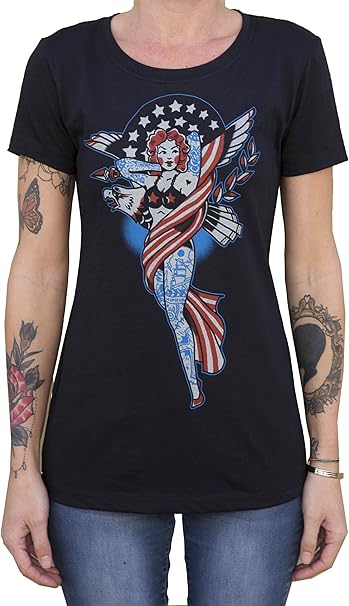Details About Lucky 13 T Shirt Women Liberty Belle Pin Up Girl Traditional American Tattoo