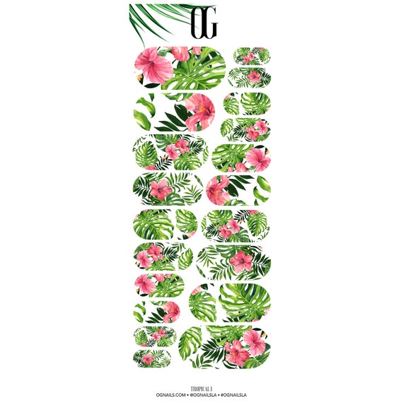 Tropical 1 Nail Decals Palm Tree Floral Nail Art Nail Decals Waterslide Decals Gift For Her Birthday Gift Stickers Temporary Tattoo