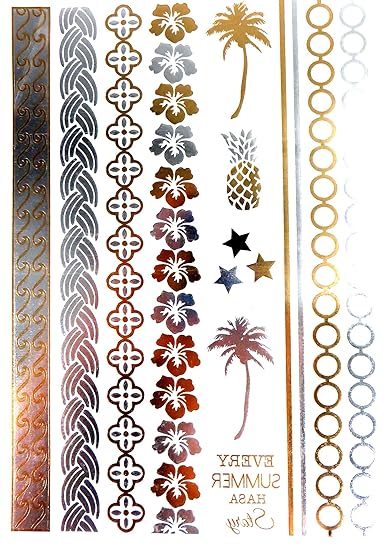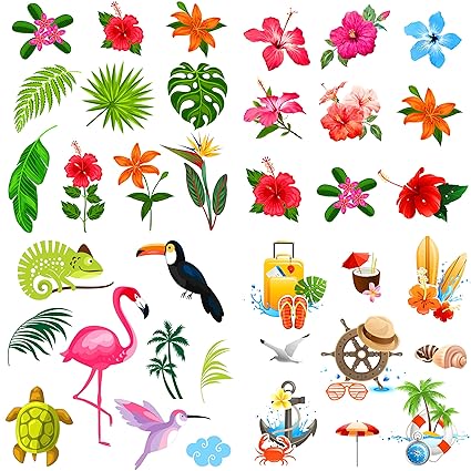 Elcoho 108 Pieces Hawaiian Luau Hibiscus Temporary Tattoos Tropical Tattoos Hawaiian Pattern Tattoos For Party Decorations Supplies Assorted 36