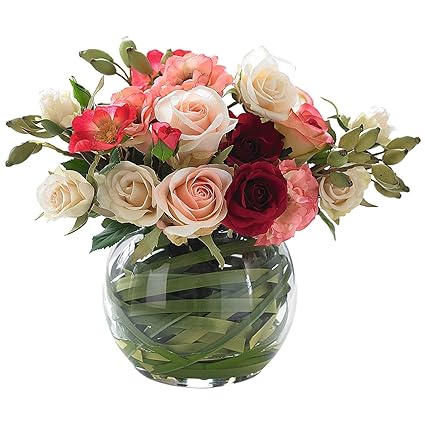 Artificial Pink Cream Red Rose Flower Arrangement Vase Centrepiece Plant Realistic Lifelike