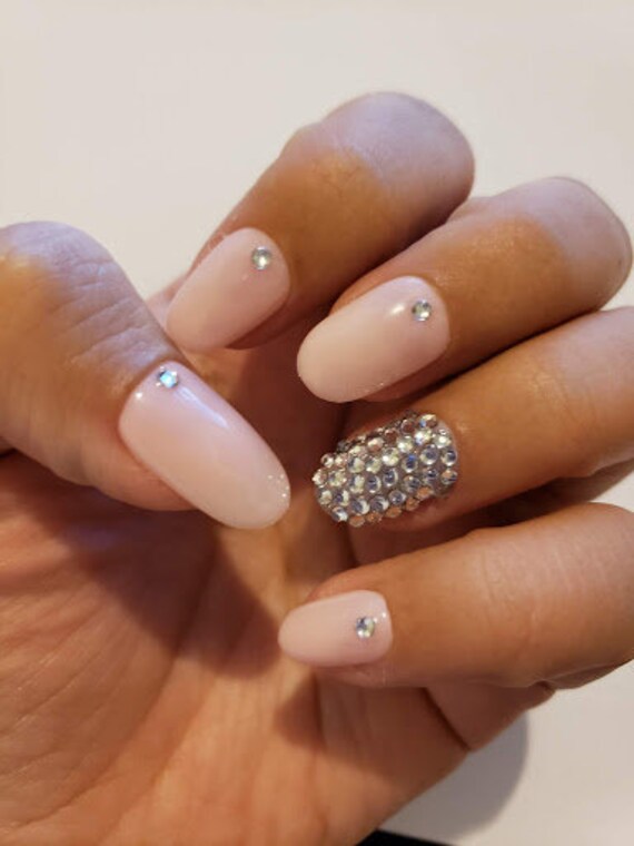 Very Light Blush Pink Full Rhinestone Accent Glossy Press Etsy
